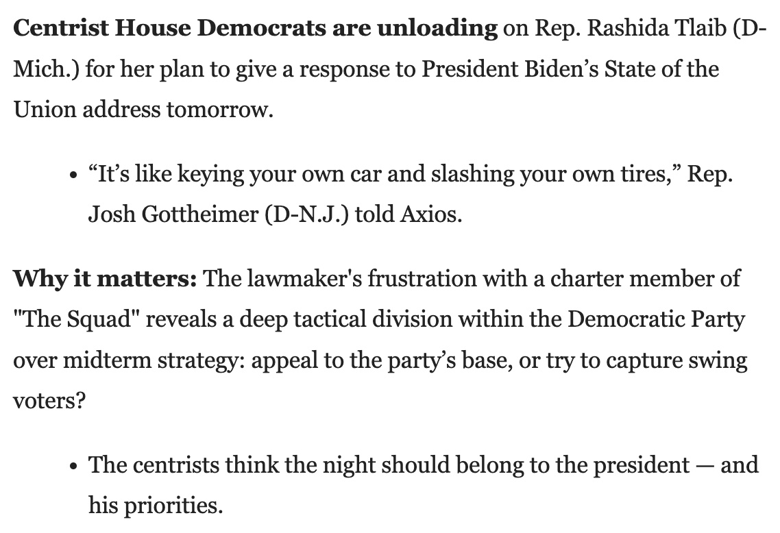 tgo Posted March 1, 2022 Author Report Share Posted March 1, 2022 27 minutes ago, Titans279 said: I guess because this is not a "response" but a "perspective" that the "centrist democrats" here get a pass from the media? Axios really put out this quote in a newsletter even though No Labels is doing the same thing. Also idiots. The leader of the free world is the one providing perspective tonight. oldschool 1 Link to post Share on other sites More sharing options...