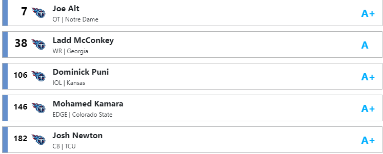 titans79 Posted March 31, 2024 Report Share Posted March 31, 2024 On 3/29/2024 at 1:32 PM, SleepingTitan said: 4 drafts. 2 with trade backs, and 2 without. I rejected all trades after the initial 1st round. I'm clipping the later rounds off. As you can see, it's easy to trade back if the draft generators are remotely accurate and still get ya'lls loverboy Alt. I would love Kamara at 146...feel like that would be a steal. Link to post Share on other sites More sharing options...