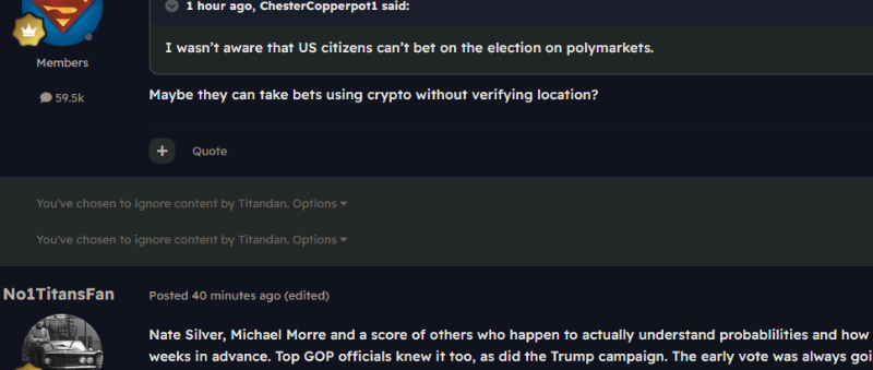Titandan Posted October 20, 2024 Report Share Posted October 20, 2024 (edited) 2 hours ago, Strunk'sDessert said: You tagged me, dip ass. I don't have you on ignore because I love to see you be a pathetic little hound dog. But I'll follow up on my word from here on out to not engage you. Also, is this guy just @Mercalius under an alias? He's been quiet lately. You're free to comment any time. I never said I was done with you. Nor did I threaten to ignore you. Add @Mercalius to the list of people I might be. Did you get your tin foil hat from Temu? Alex Jones would be ashamed of you, son. Edited October 20, 2024 by Titandan Link to post Share on other sites More sharing options...