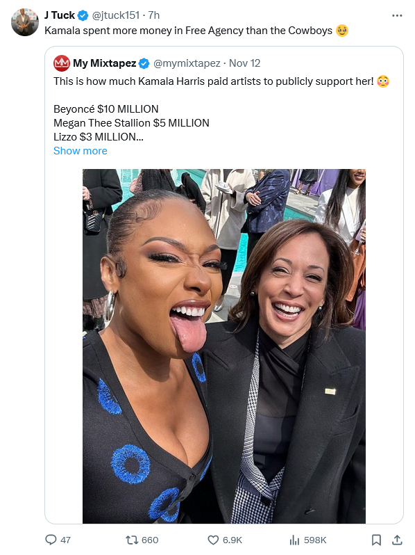 abenjami Posted November 14, 2024 Report Share Posted November 14, 2024 (edited) 6 hours ago, BudsOilers said: You mean paying black female celebrities doesn't sway white rural voters? From what we heard about voting statistics, she likely would have won the election if she had allocated those funds to artists like Pitbull and Lighter Shade of Brown! Edited November 14, 2024 by abenjami KenAmato58 1 Link to post Share on other sites More sharing options...
