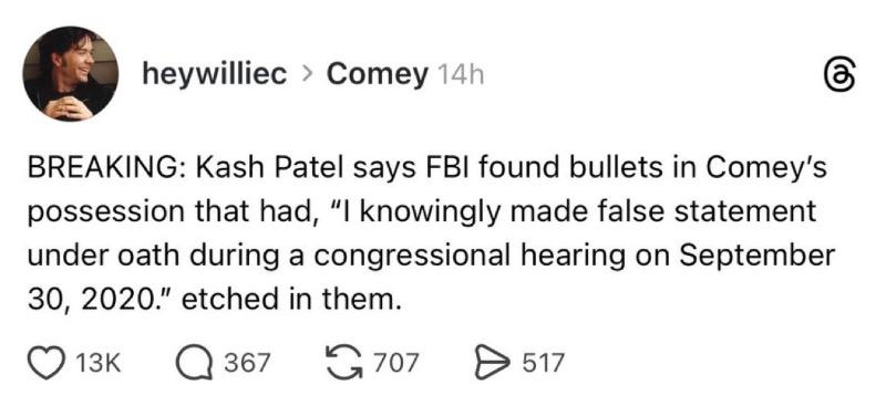 Jamalisms Posted December 5, 2025 Report Share Posted December 5, 2025 Statistically, Comey will be indicted eventually if they just keep trying. At some point you have to have the stars align. Of course, then they have to go to trial and it all dies there; probably gets thrown out for obvious reasons. But an indictment is theoretically possible if they never stop trying. And these things matter to the dumbest motherfuckers. MadMax, and Mythos27 2 Link to post Share on other sites More sharing options...