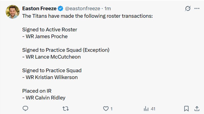 Starkiller Posted 7 hours ago Report Share Posted 7 hours ago (edited) 40 minutes ago, ctm said: So 3 WR moves and none involved promoting XR. I can only conclude that coaches are stupid and posters know better. They don’t need to. If they want him to play they will elevate him on Saturday. Proche plays Ridley’s position. Restrepo is slot only. Simple roster math. And we know they activated Proche over Restrepo earlier when Ridley was hurt so it is no surprise that they would promote him now, too. If Dike misses the next game then they likely activate Restrepo. If not, they likely don’t. Edited 7 hours ago by Starkiller tgo 1 Link to post Share on other sites More sharing options...